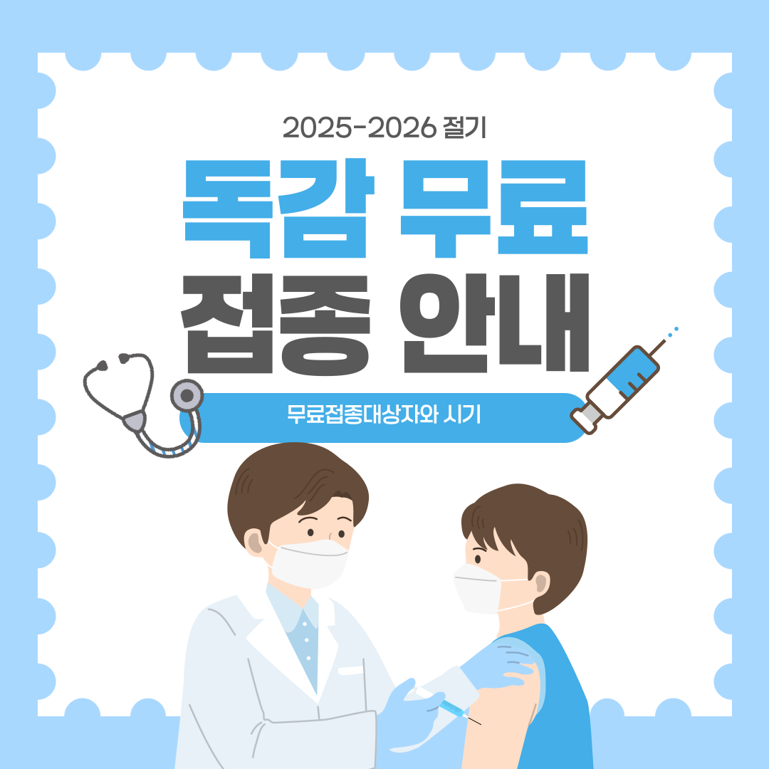 2025-2026절기 무료 독감 예방접종 기간 및 권장 시기는 아래와 같습니다.